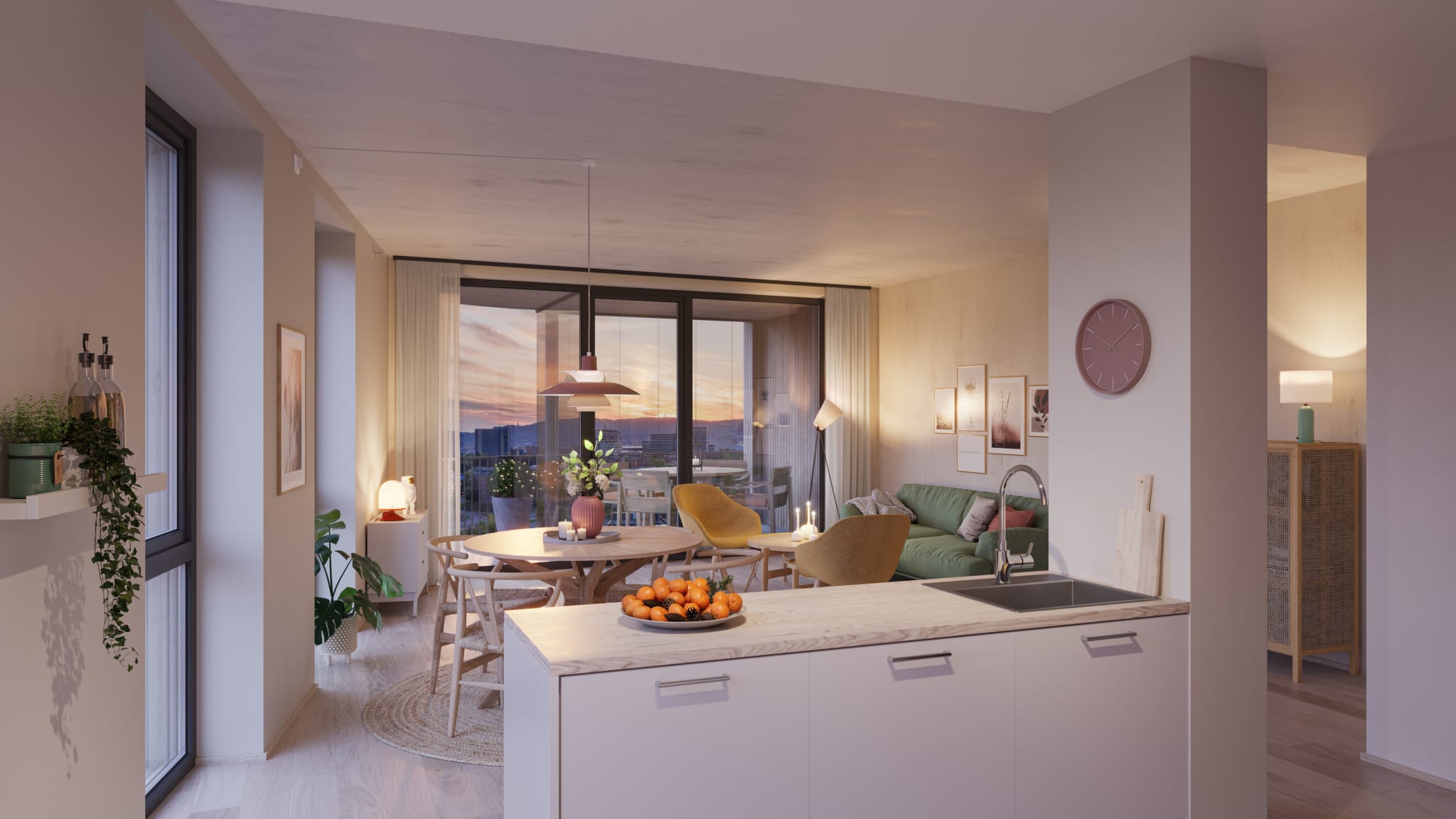 I denne leiligheten leveres Vanilje som standard. En mild, hyggelig og lys stil der produkter og overflater harmonerer godt sammen. Om du ønsker en annen stil, er dette mulig å bestille som tilvalg. Les mer her: