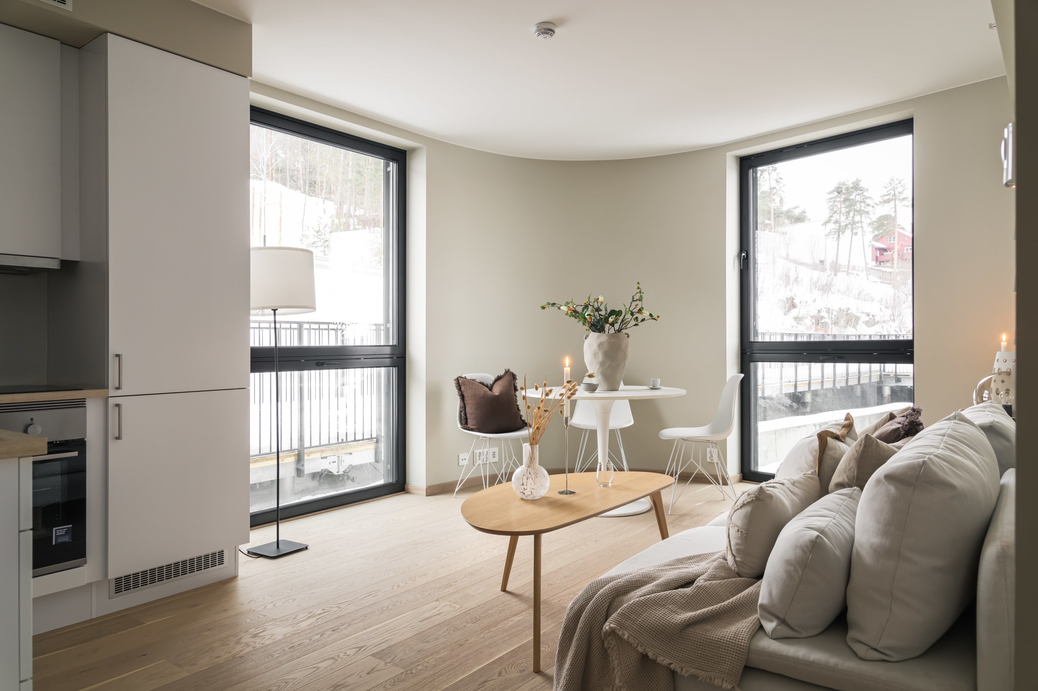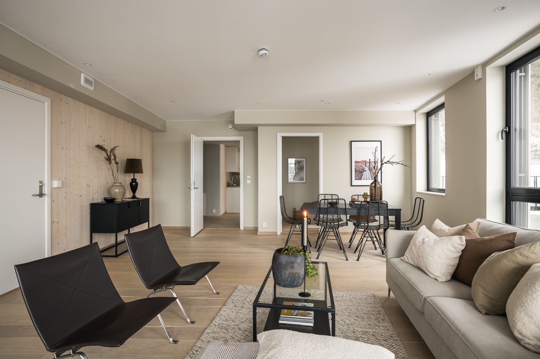 To leiligheter med felles deleareal i midten! Storstue, ekstra soverom og felles balkong for et sosialt hverdagsliv. Når du ønsker privatliv, kan du låse døra til fellesstua, og være hjemme i ditt eget krypinn.