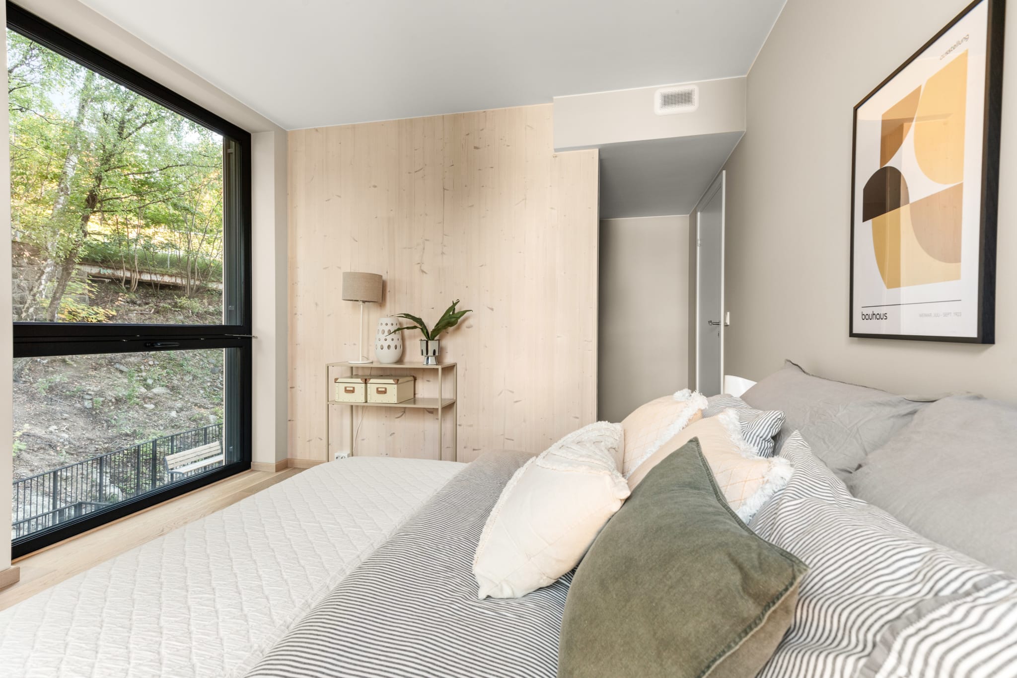 I Fyrstikkbakken 14 får du tilgang til 250 kvm med fellesarealer som selskapslokale, gjesteleiligheter, sauna på takterrassen, treningsrom og smart parkering for bil og sykkel. Alt dette, som vi har valgt å kalle for prosjektets Delemeter, bookes enkelt i en app som er knyttet til digitale nøkler og Vipps.