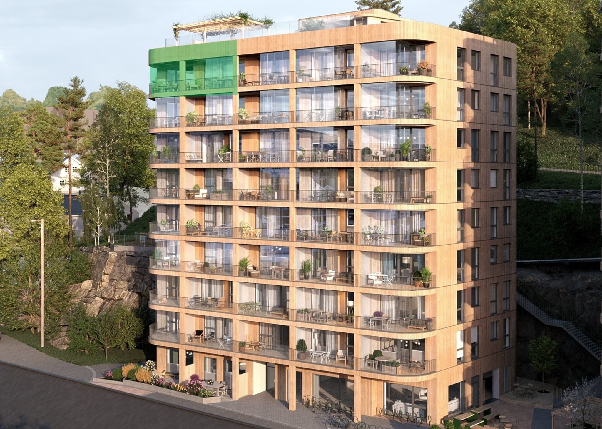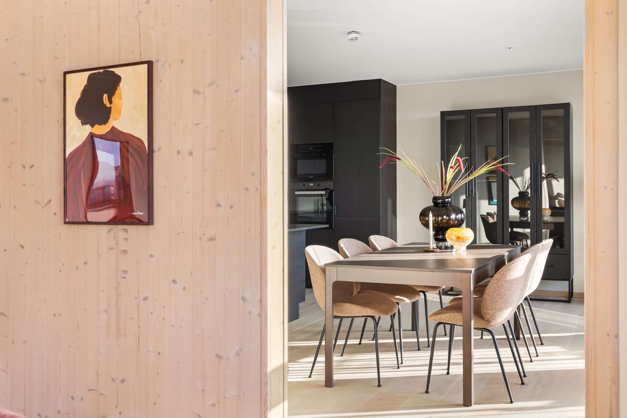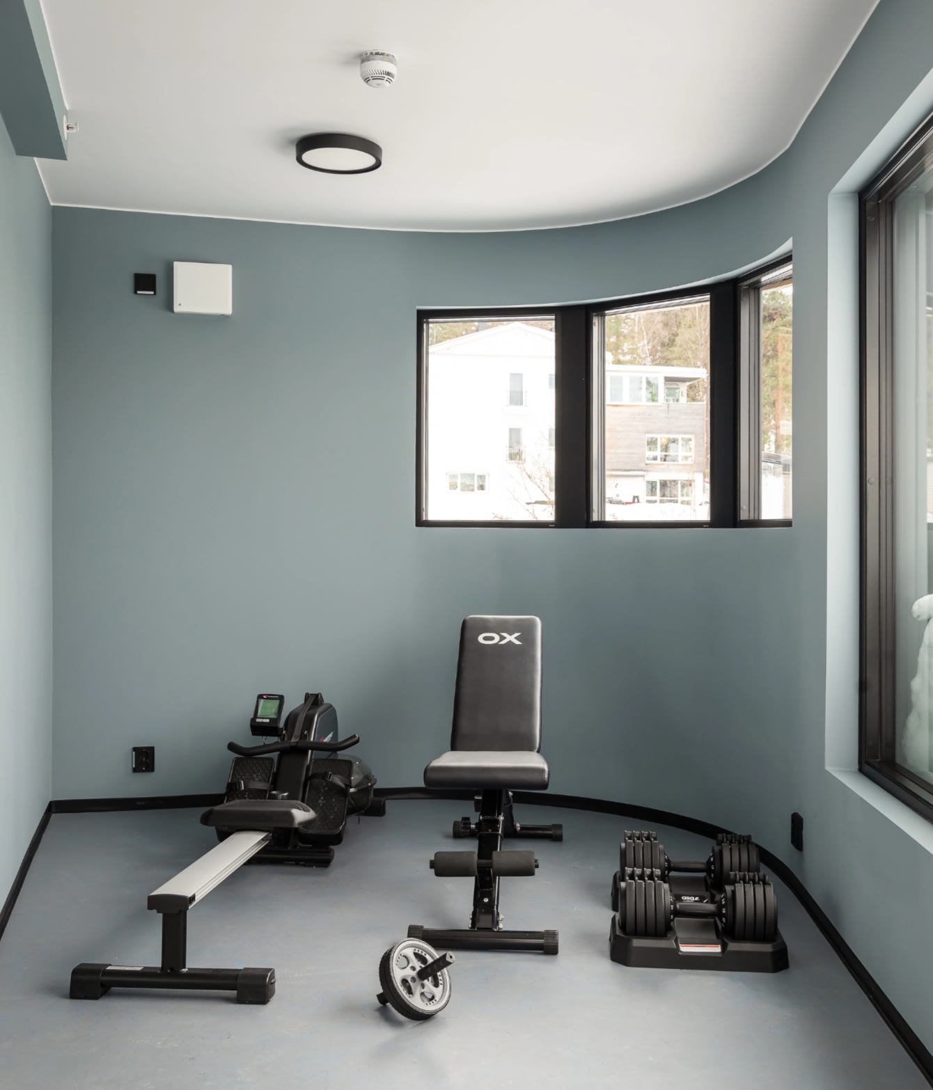 I Fyrstikkbakken 14 får du tilgang til 250 kvm med fellesarealer som selskapslokale, gjesteleiligheter, sauna på takterrassen, treningsrom og smart parkering for bil og sykkel. Alt dette, som vi har valgt å kalle for prosjektets Delemeter, bookes enkelt i en app som er knyttet til digitale nøkler og Vipps.