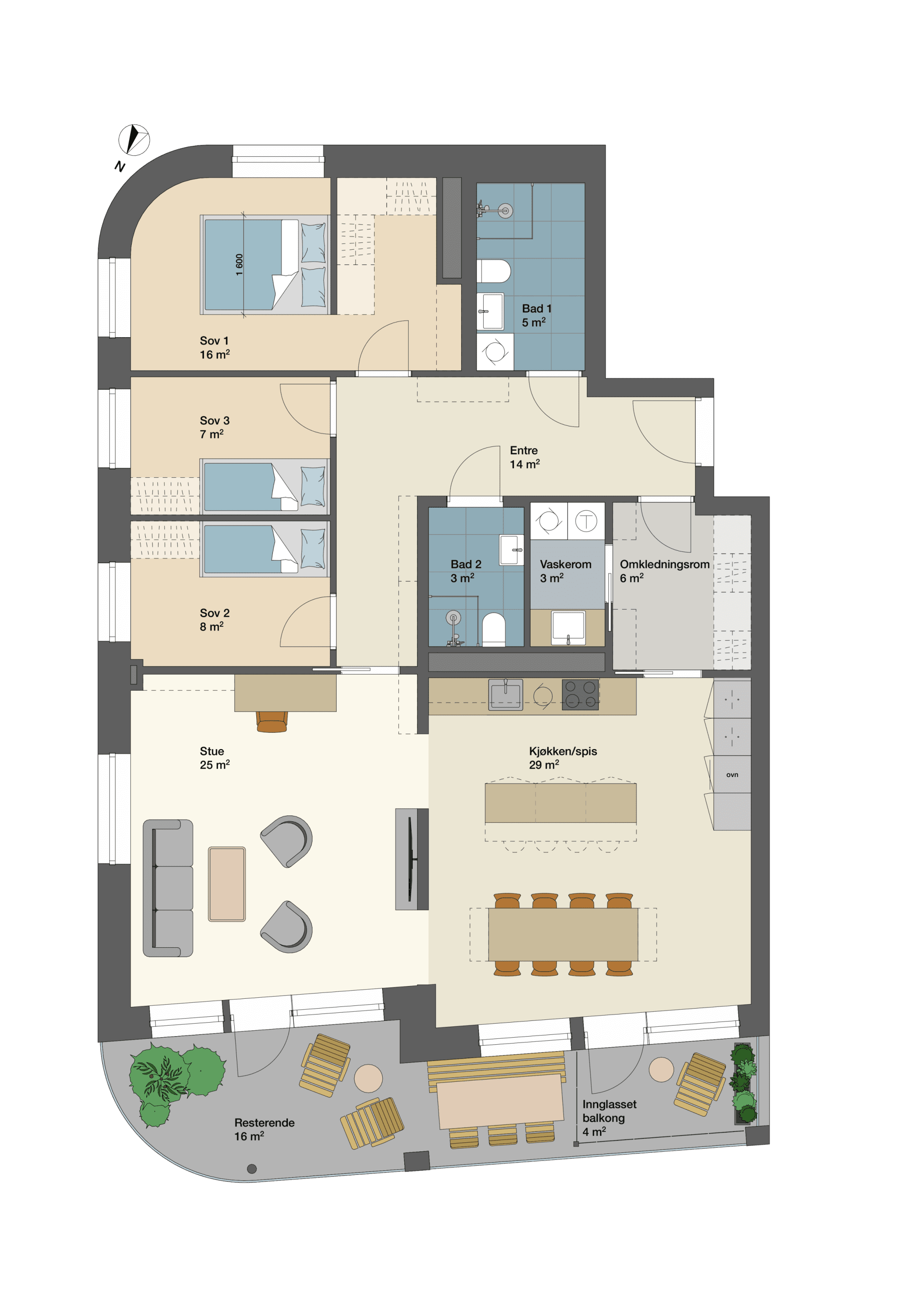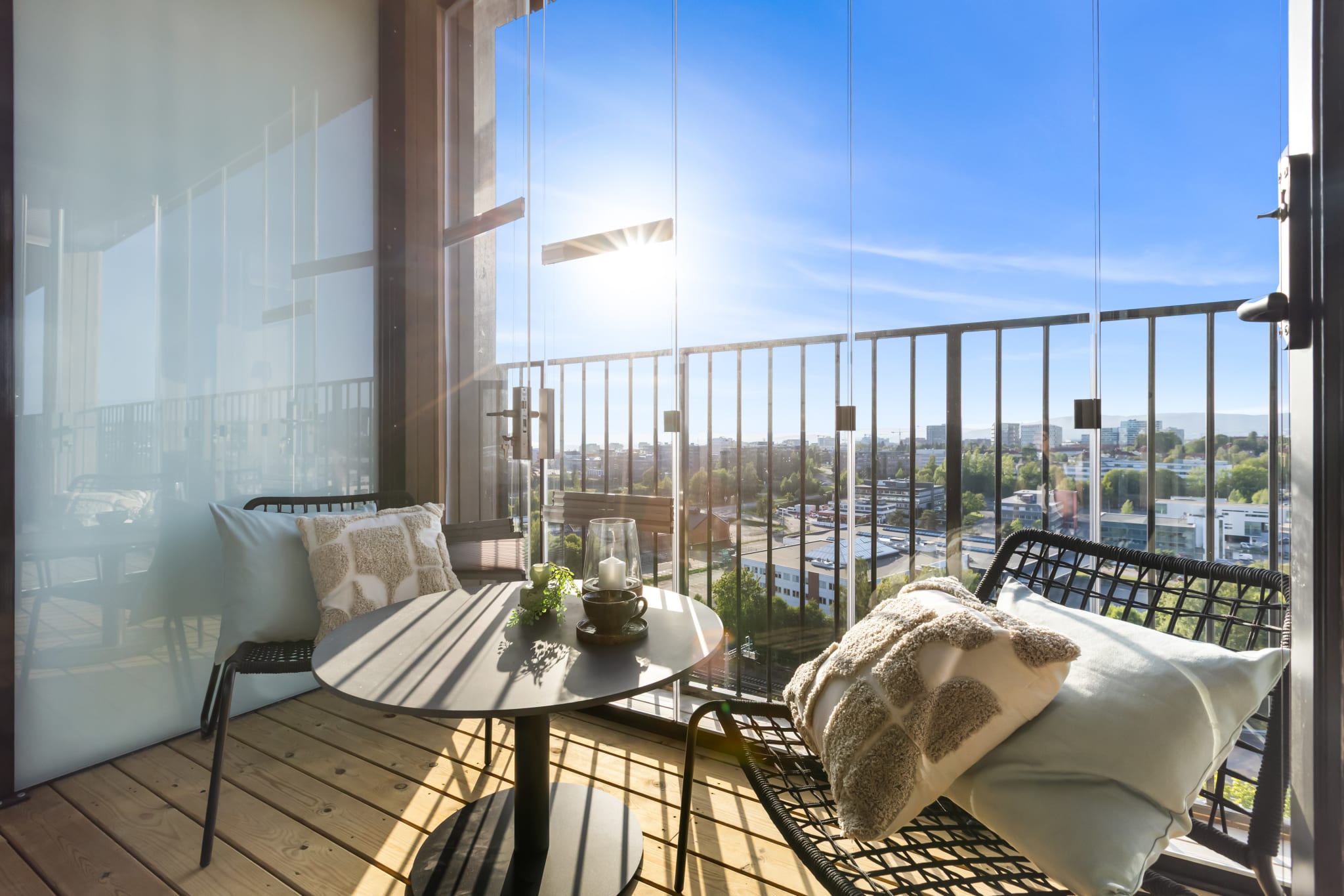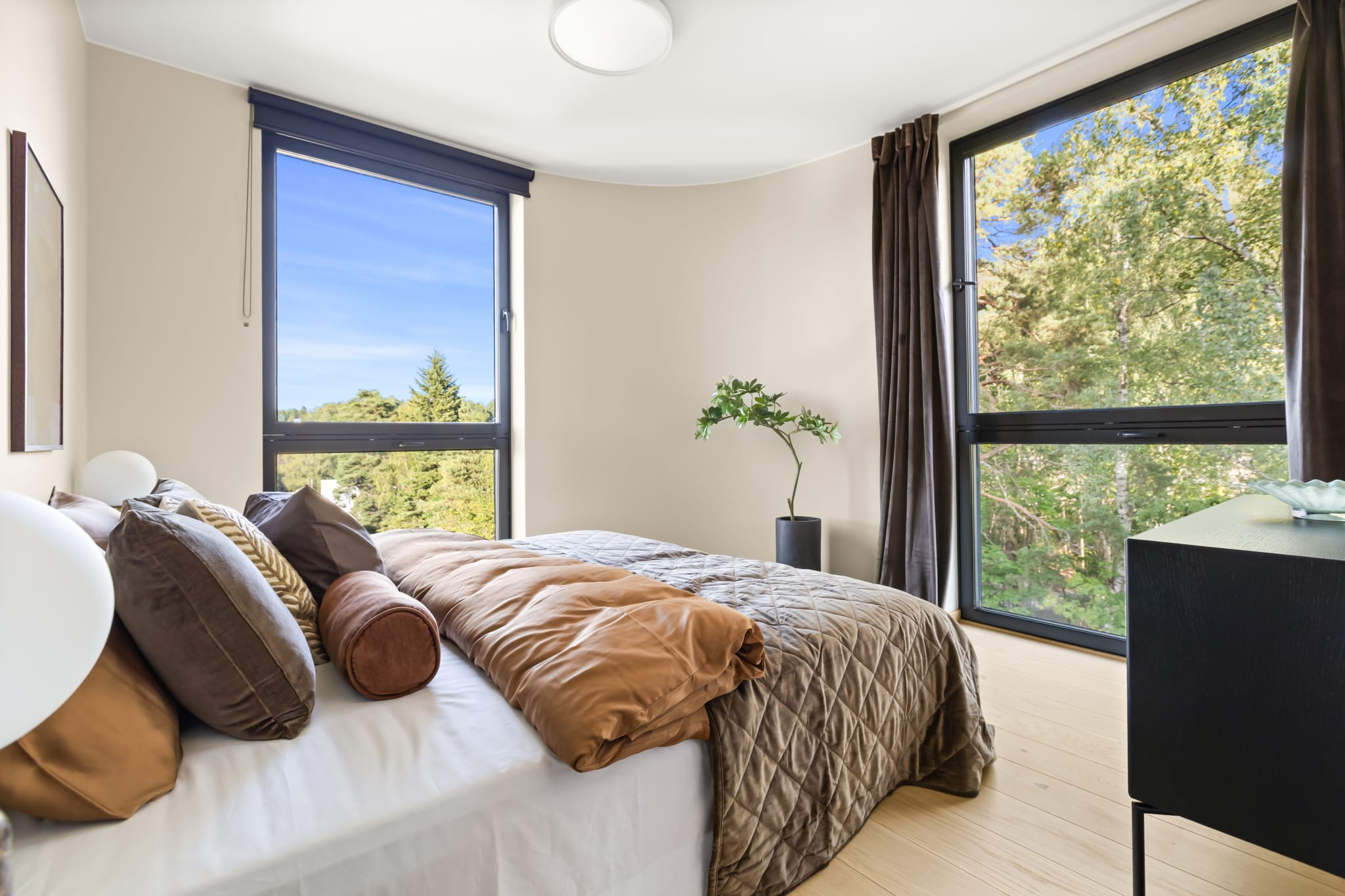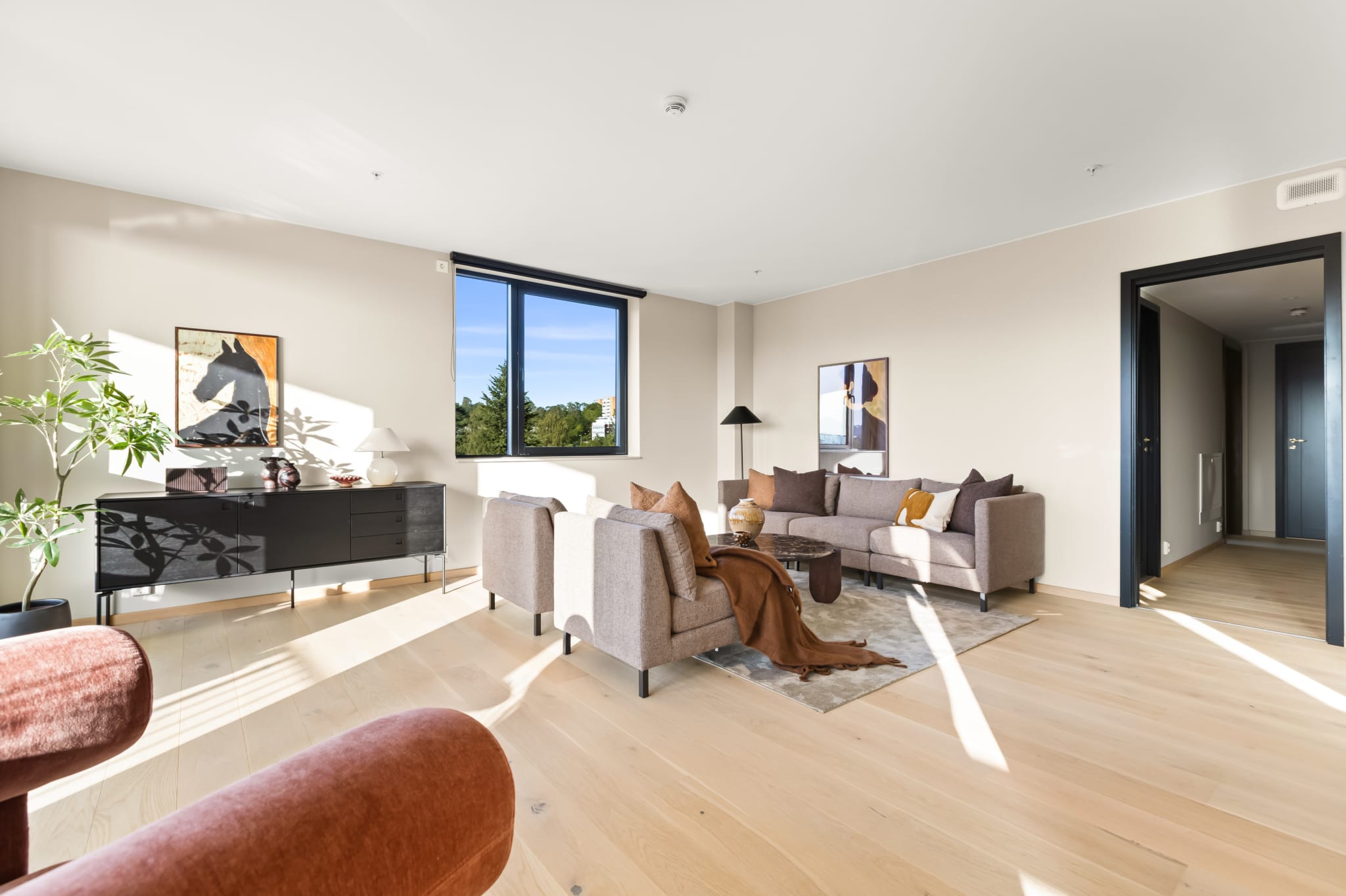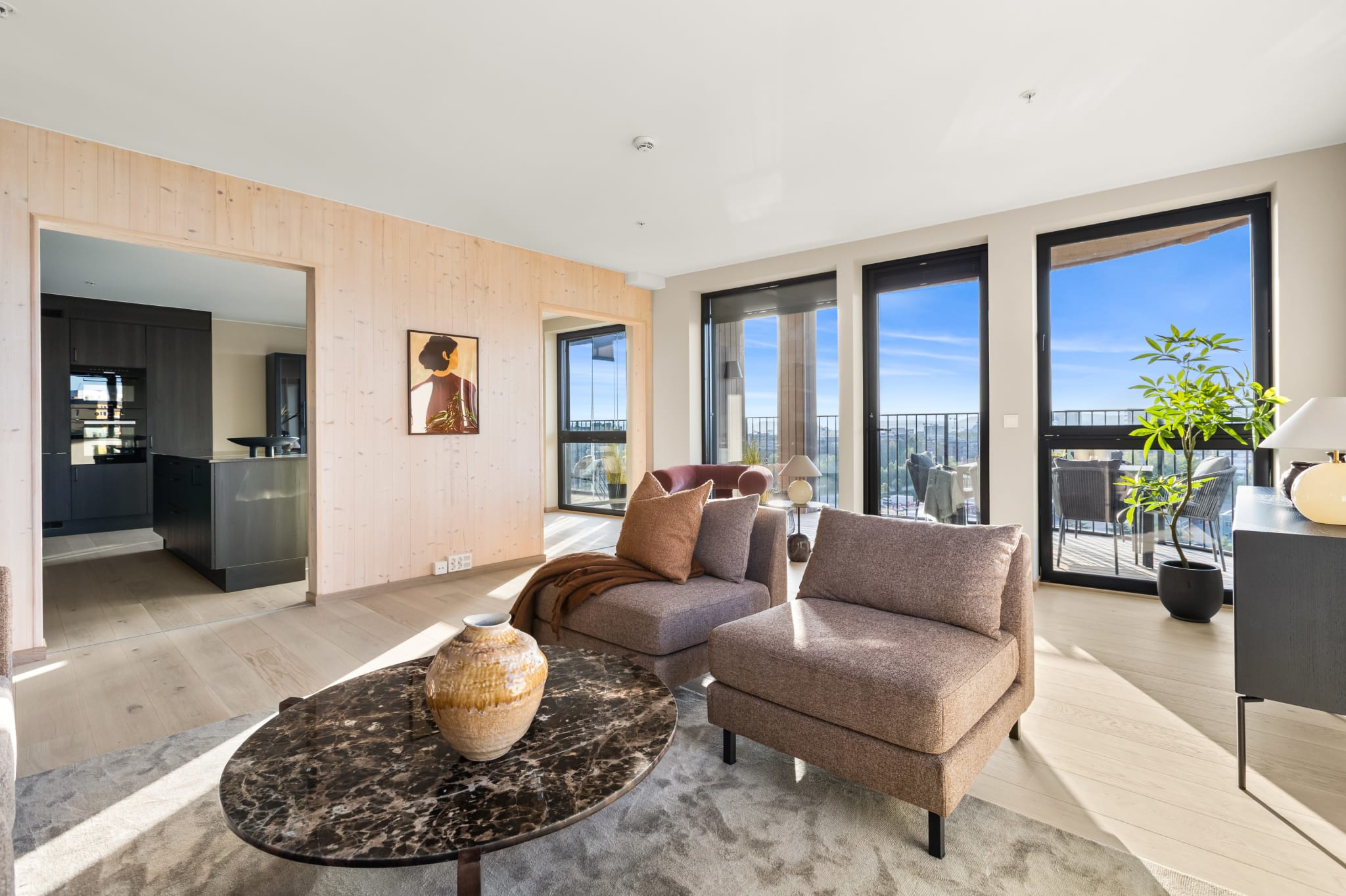Leiligheten inneholder tre soverom, to bad, stue og kjøkken på over 50 kvm og en stor, privat balkong med nydelig utsikt over Oslo. I tillegg får du tilgang til selskapslokale, sauna på takterrassen og gjesteleiligheter :)