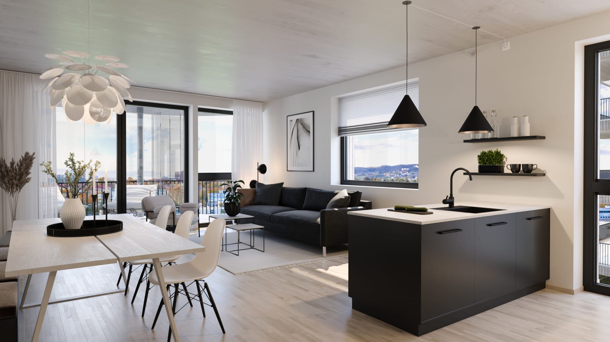 Leiligheten leveres med standard Pepper. En kontrastfylt og urban stil hvor produkter i sorte detaljer skaper en ren og moderne profil.