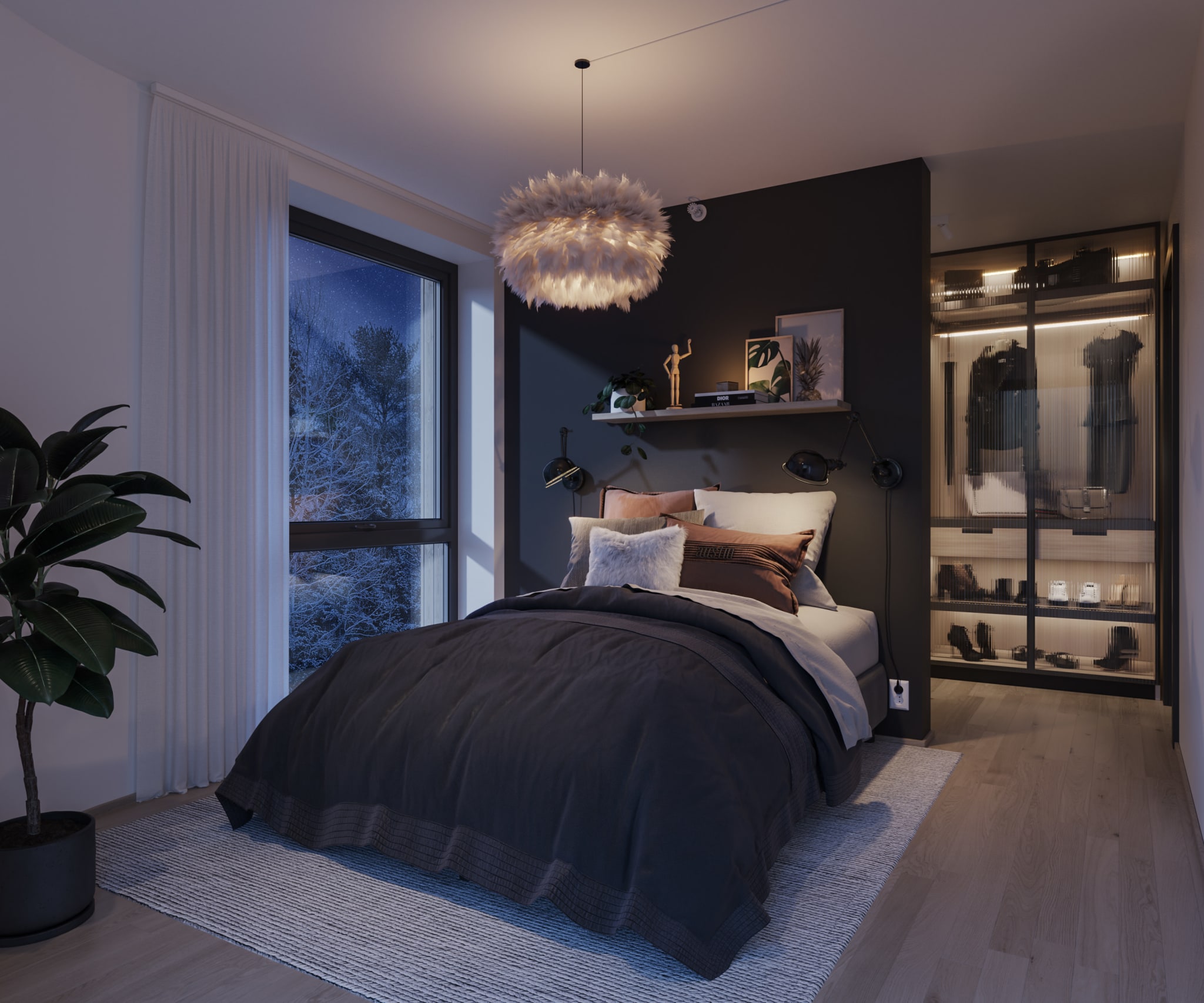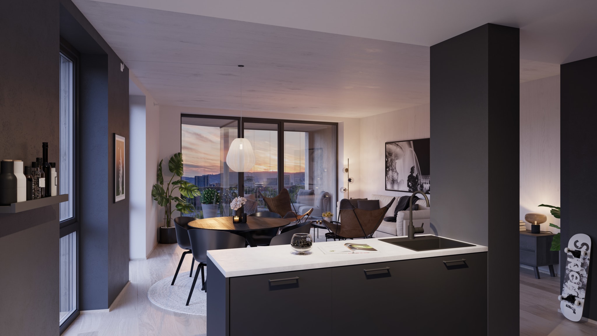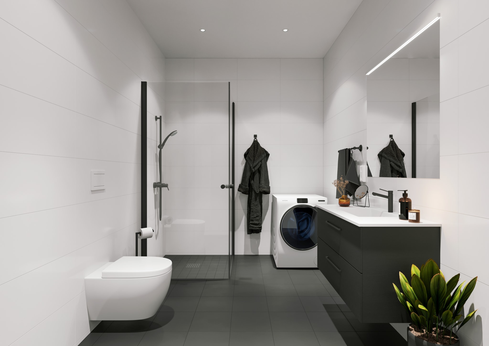 Leiligheten leveres med standard Pepper. En kontrastfylt og urban stil hvor produkter i sorte detaljer skaper en ren og moderne profil. Om du ønsker en annen stil, er dette mulig å bestille som tilvalg. Les mer her: