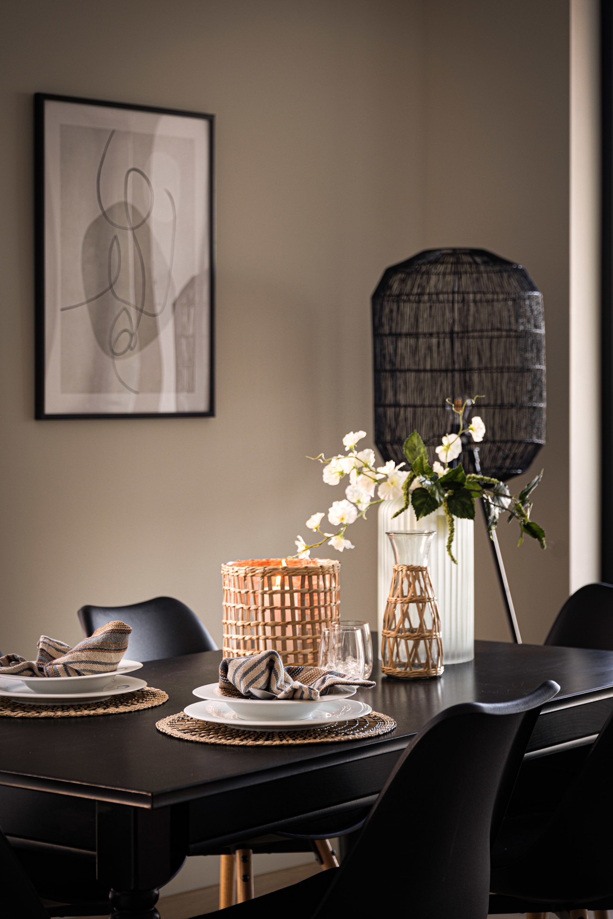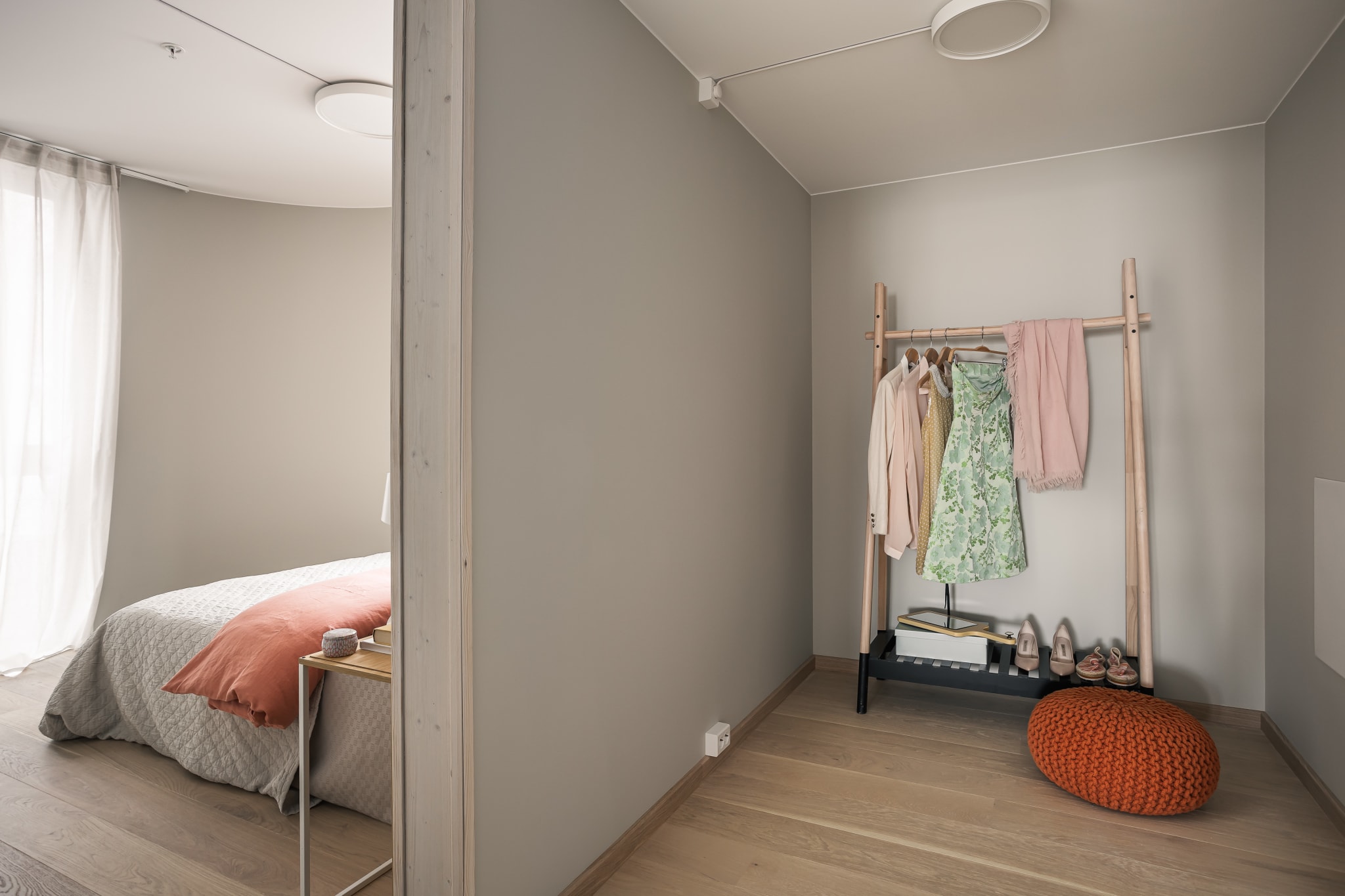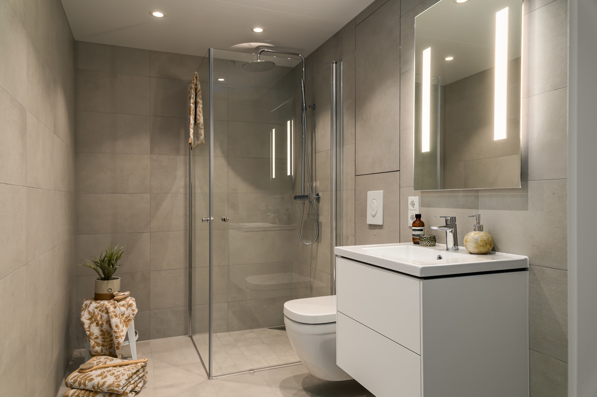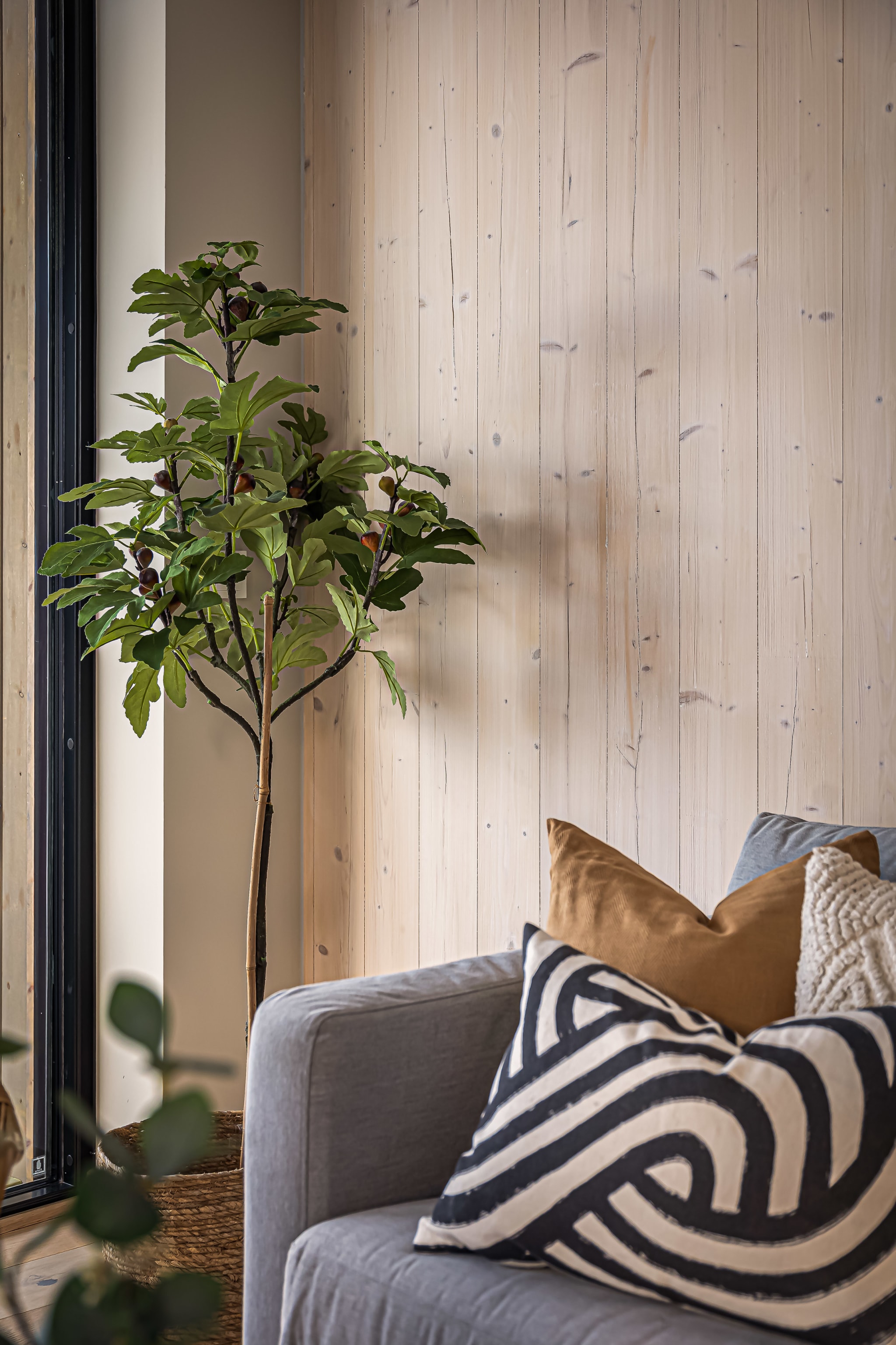 Leiligheten leveres med en helhetlig interiørstil - hvor rommene er satt sammen for å gi et avslappet og harmonisk hjem. Lys beige veggfarge i alle rom - og enkelte veggflater leveres med synlig massivtre som gir et lunt og godt inneklima. På badet leveres vegg og gulv med sandfarget fliser. Kjøkkenet er moderne med sort overflate med integrerte hvitevarer. 1-stav parkett m/ gulvvarme i oppholdsrom og bad. * NB: Bildene i bildeserien er fra visningsleilighet med samme interiørstil, men annen beliggenhet.