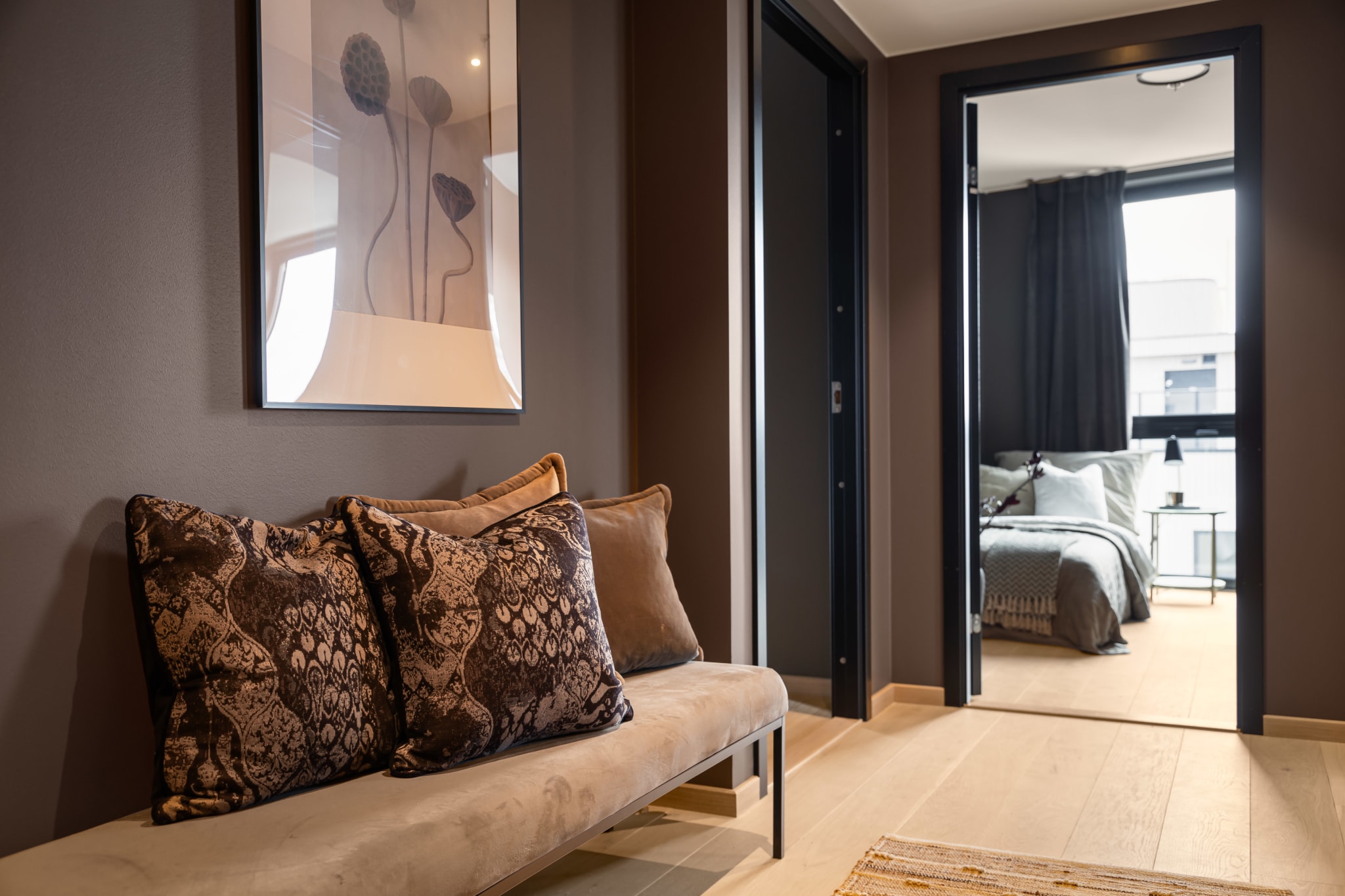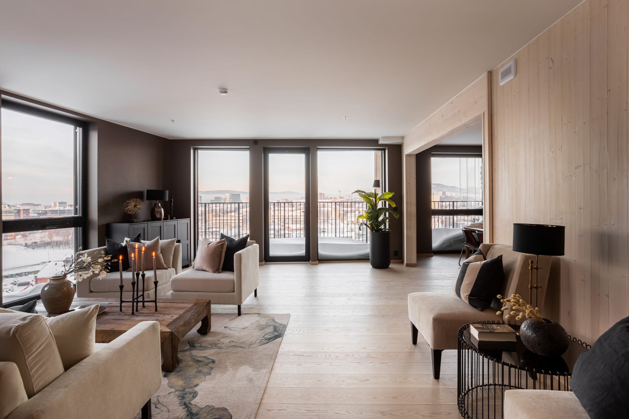 Drømmer du om å ha stor boltreplass hvor du kan invitere venner og familie på besøk? Vi har kun to ledige toppleiligheter over 125 kvm igjen til salgs - begge fullpakket med god kvalitet. Stue og kjøkken på over 50 kvm, 3 soverom, 2 bad, separat vaskerom og deilig balkong med utsikt over Oslo. Leilighetene blir levert med interiørstilen Mørk Safran med mørke veggfarger og messingdetaljer som gir deg litt glamour i hverdagen. Pris fra kr. 15.465.114,-
